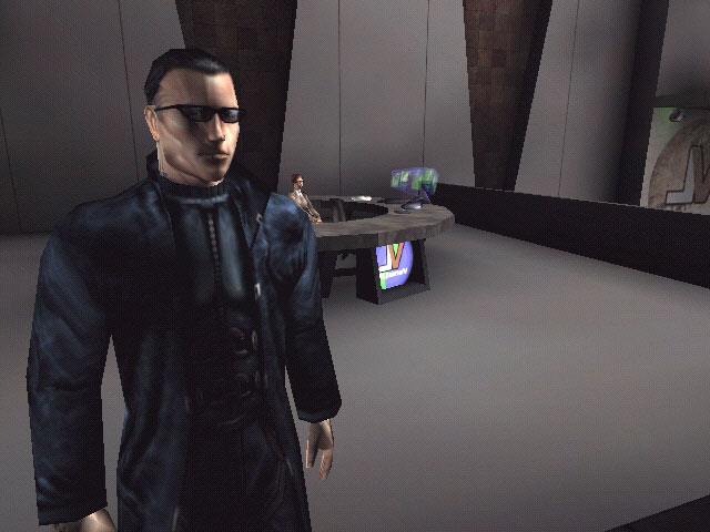 Sheldon Pacotti: I think there's always some pretty serious tension between mission dynamics and characterization. Sometimes an NPC has to dump so much info on the player that characterization gets sidelined. Notice how much Paul lays on the player in the game's first convo. Gamey stuff like the choice of weapons kept getting added to that convo to address other problems in the mission. Tong's convos are also very heavy with go-here-do-that dialogue. Page's problem, on the other hand, is that he barely makes an appearance in the game until the final mission. The designers simply didn't have any use for him until the final showdown.